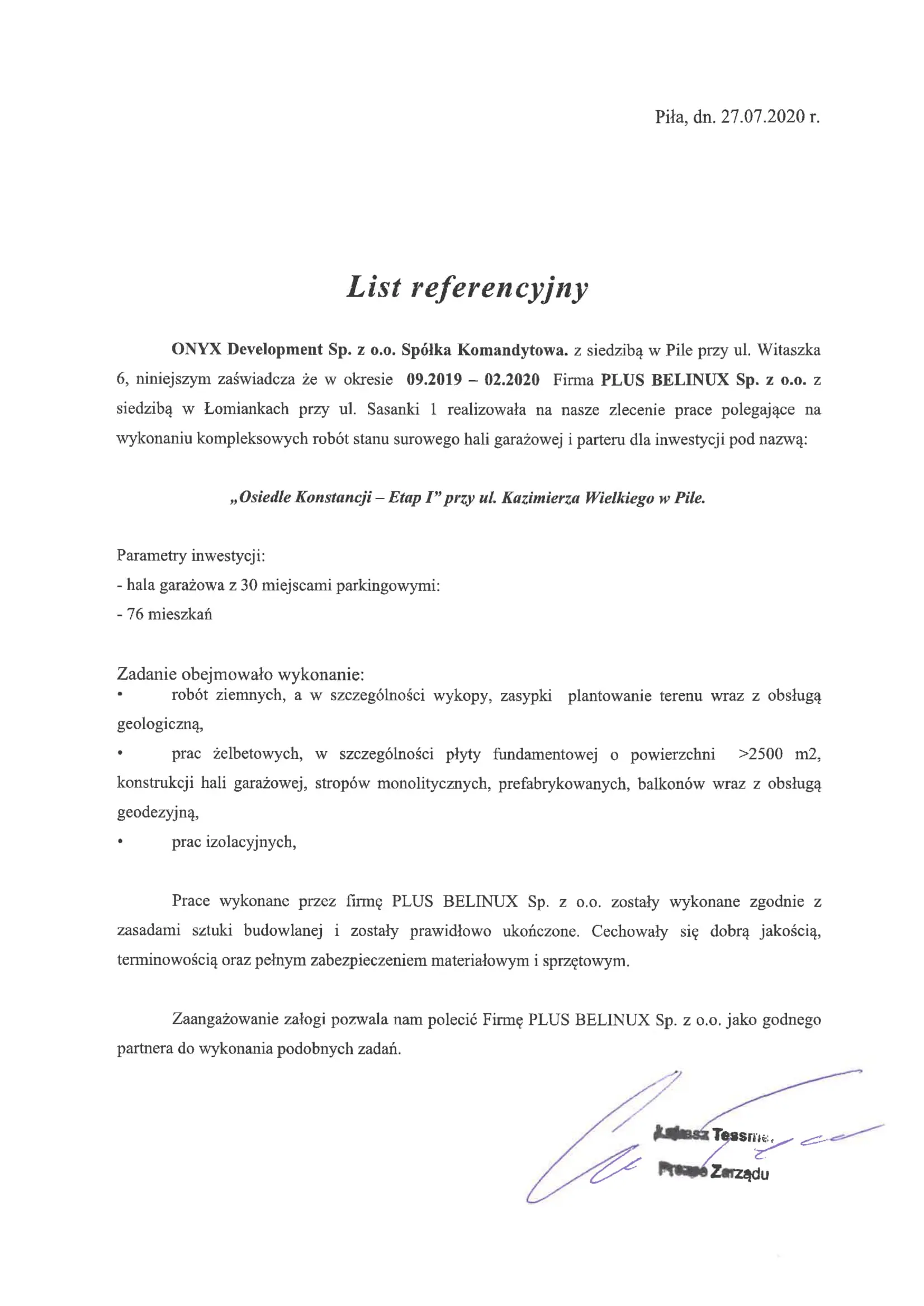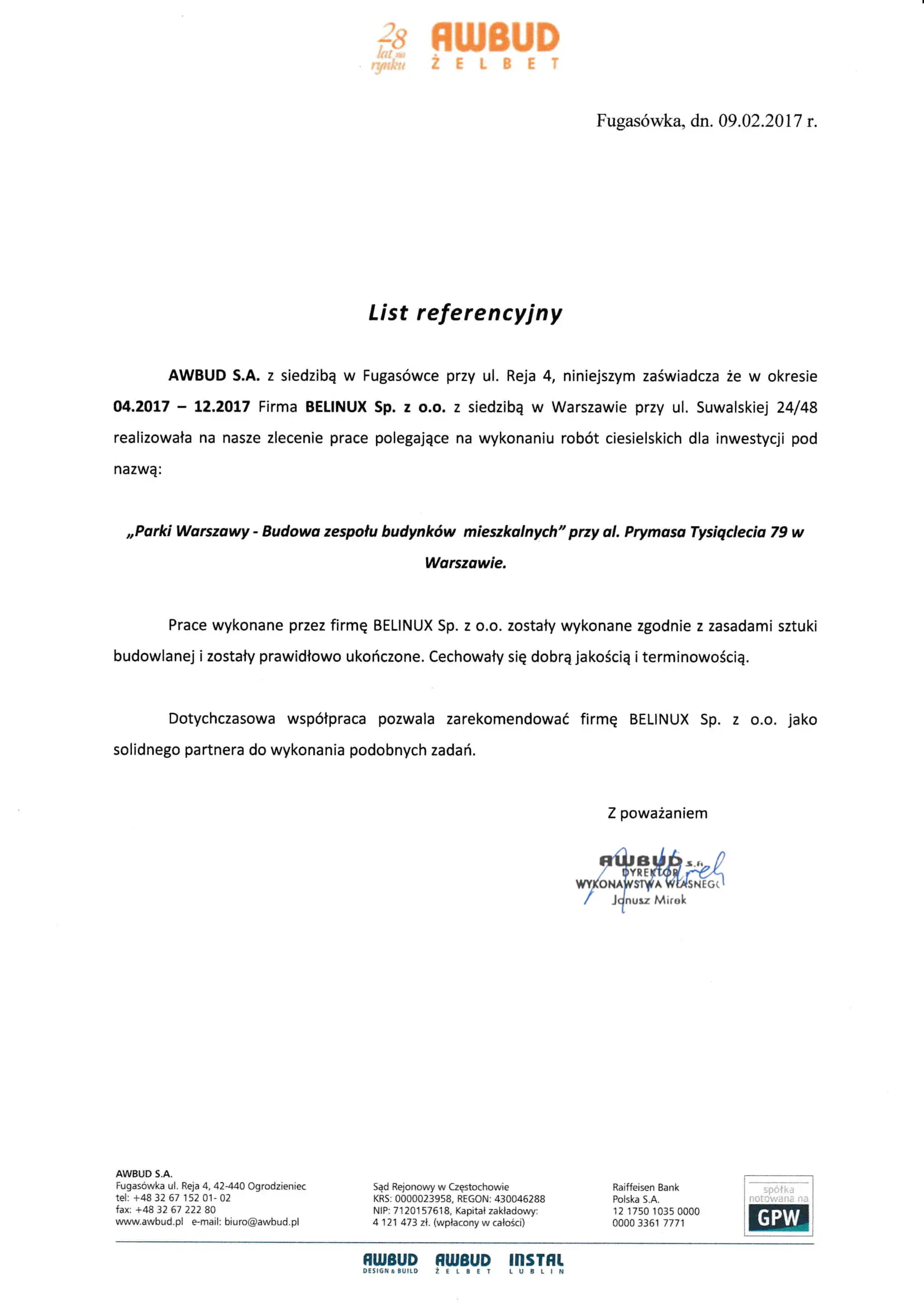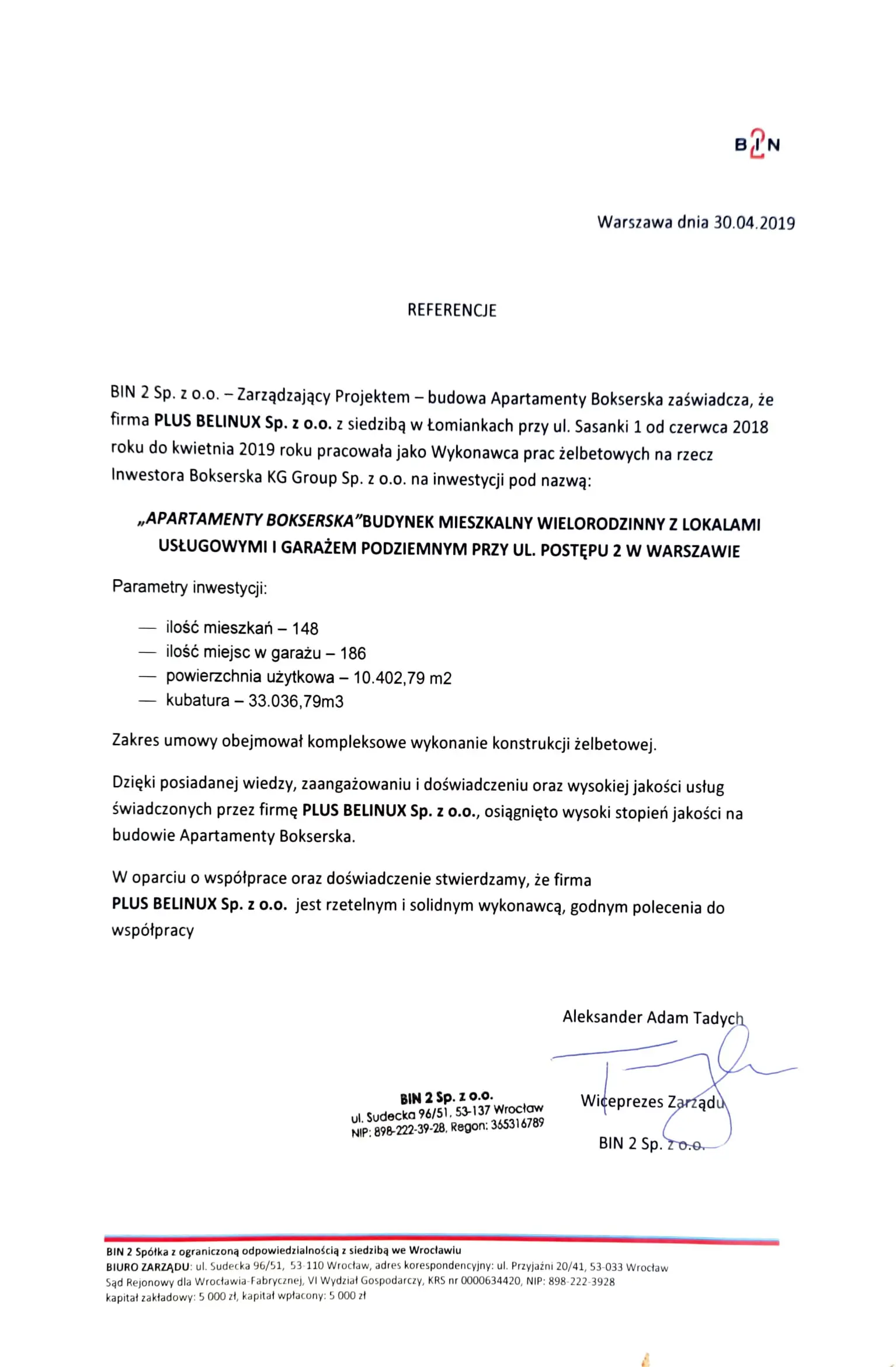 Spółka PLUS BELINUX działa na rynku już ponad 10 lat systematycznie rozwijając i zwiększając swój potencjał wykonawczy i zaplecze techniczne.